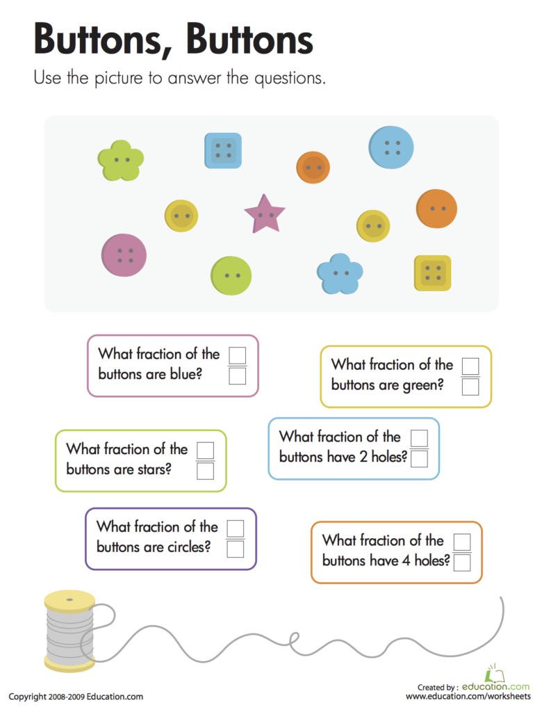 ボタンを色や形や穴の数などで分類して分数が学べます。