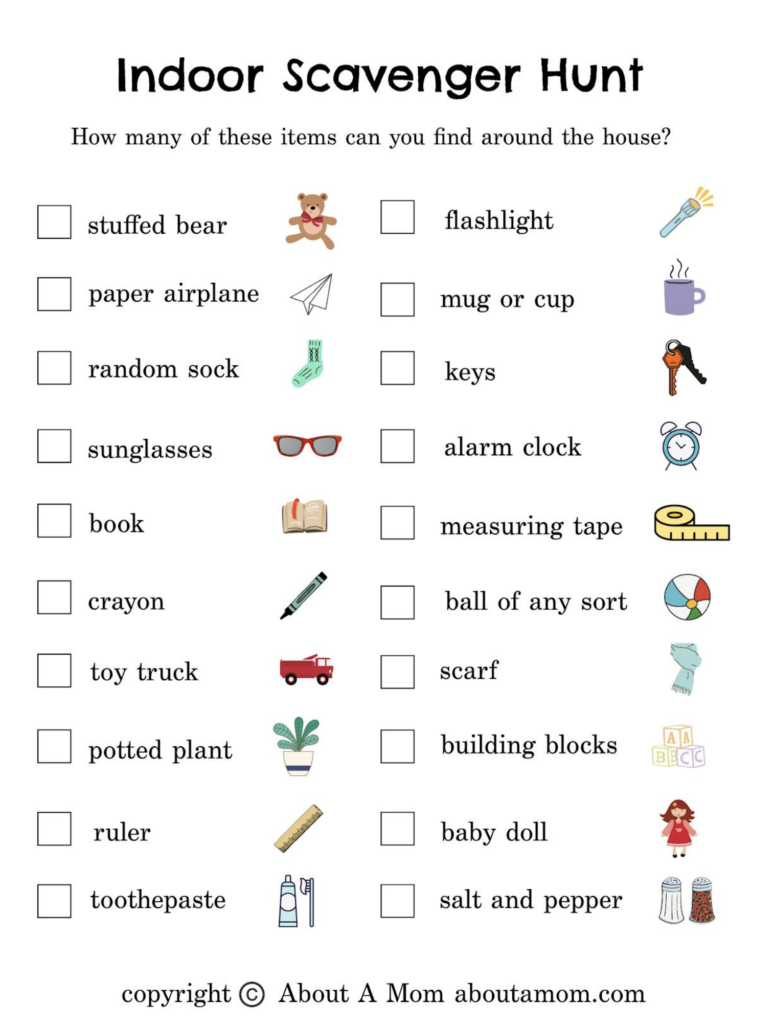 出典: About A Mom – FREE INDOOR SCAVENGER HUNT PRINTABLE