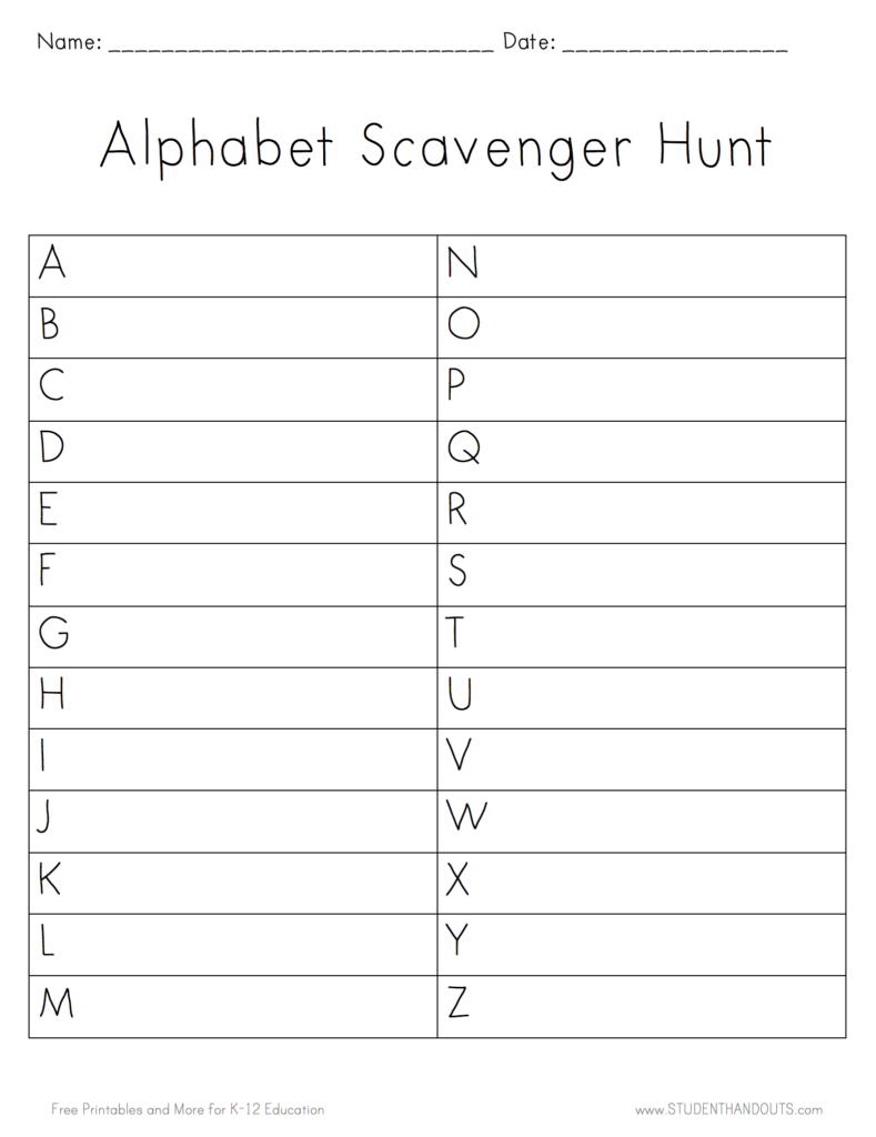 出典: Alphabet Scavenger Hunt