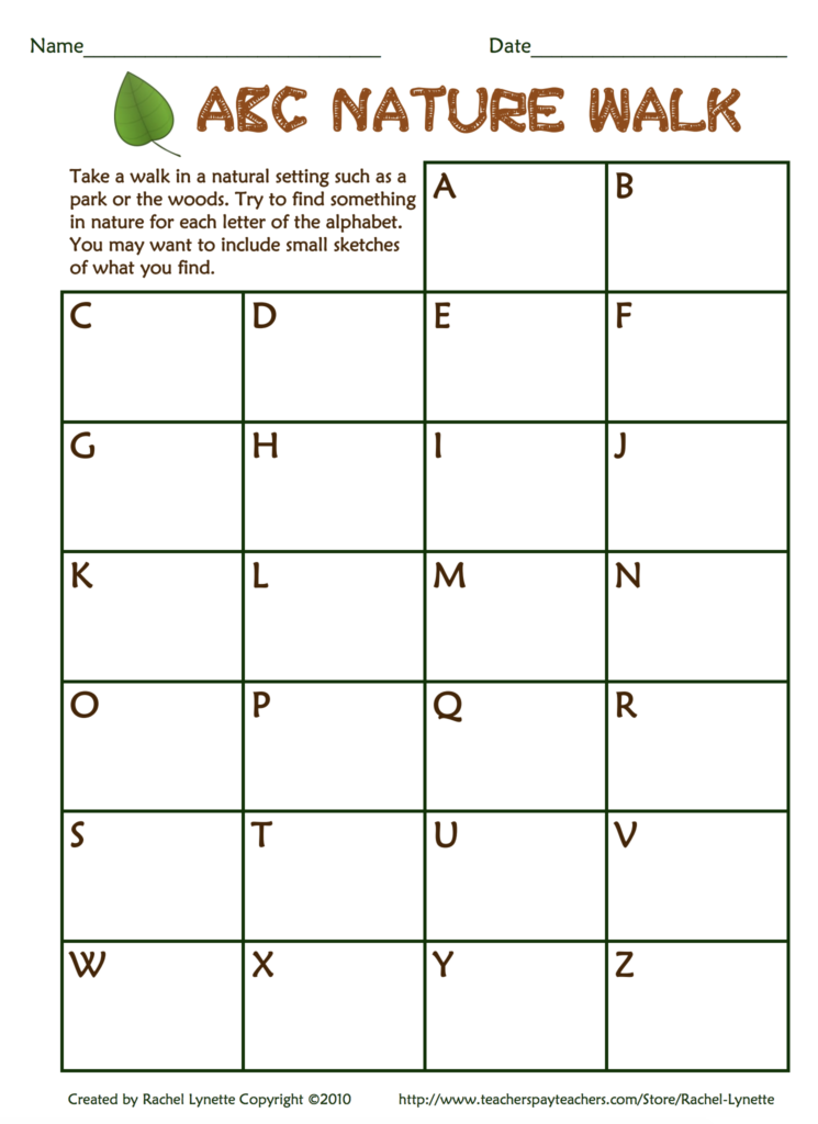 こちらはNature Walkなのでお外用です。A〜Zで始まるものを探して絵または単語をかきましょう!どの文字が簡単だったかな?逆になかなか見つからない文字はどれかな?